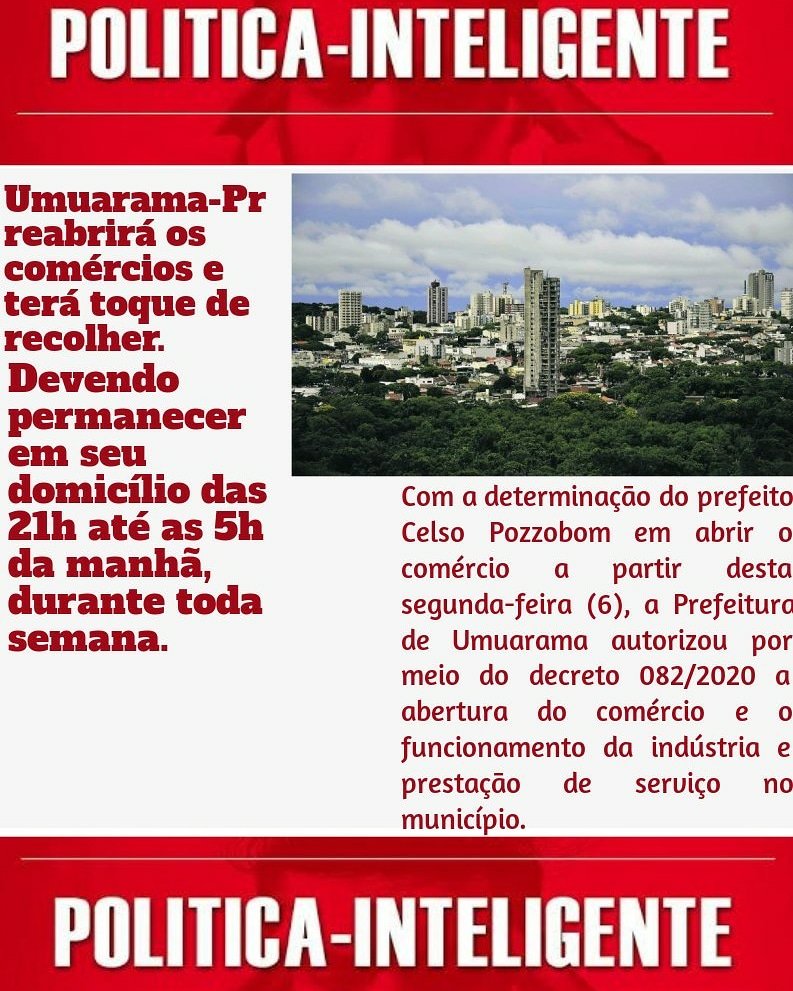 Umuarama-Pr reabrirá os comércios e Industrias… E haverá toque de recolher.